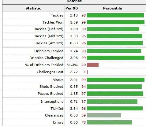 Away from his passing stats, the most attractive (and surprisingly) side of Buonanotte's game is his defensive stat. His defensive numbers tell the story of a player who doesn't switch off when his team loses the ball - a trait Maresca will absolutely love
