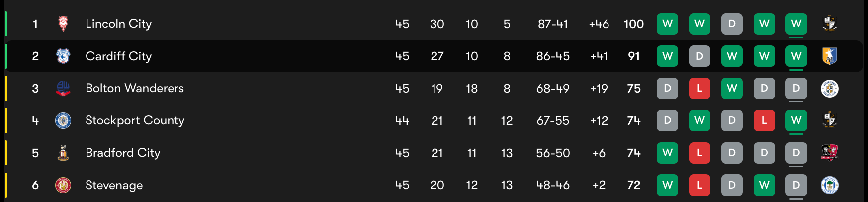 This emphatic victory moves Cardiff to 91 points from 45 matches - 16 clear of third-placed Bolton with one game remaining. The title belongs to Lincoln City, but second place is Cardiff’s to celebrate.